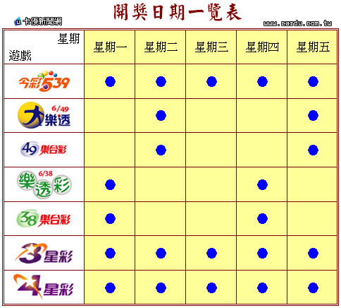 明年開始新的彩券開獎時間,也將會有所調整,像是大樂透就改為每週二、週五開獎,樂透獎也由每週三天開獎改為每週一、週四兩天。另外,電視實況轉播也將由八大電視台娛樂K台於每週一至週五晚間八點Live播出。