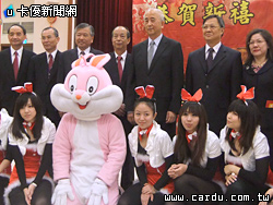 今年第一金控新春團拜,特別安排行內職員表演當紅的「保庇舞」,還有財神爺跳加官、發紅包,象徵兔年可以大發利市,獲利節節高升。