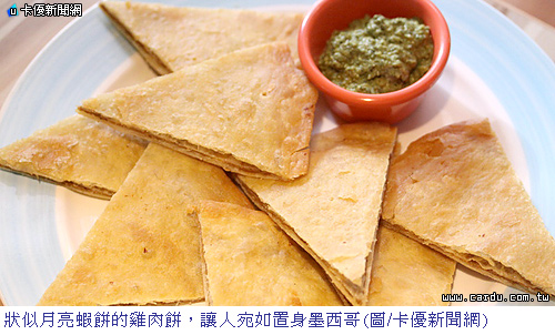 看起來薄薄的墨西哥雞肉捲,裡面可是大有學問唷!吃起來具有口感、不會過硬的餅皮,搭配餅裡的香料雞肉,再沾上綠辣醬,吃得到香香的雞肉,和辣辣的醬汁,並帶著一點淡淡的酸奶口感,一口接一口越吃越好吃。