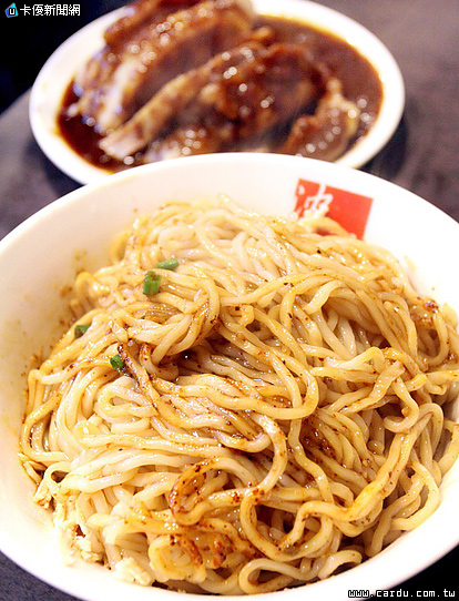 哪~滑順的麵條上放著雞絲,再加上細膩的細麵條跟麻辣醬,組成這碗看似普通,味道卻很厲害的乾挑。