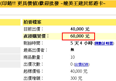消息一出,在Yahoo拍賣上的郭泓志悠遊卡,價格狂飆,由原來的1500元飆到60000元。網友直呼,差一個字母,價格就差了40倍。真是太誇張了!