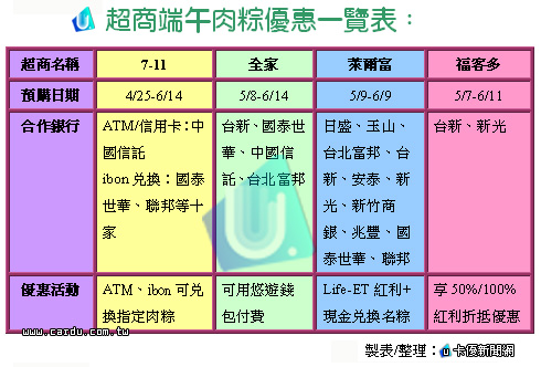 利用超商預購端午肉粽,媽媽們能免去自行料理的麻煩,還能將刷卡所得的紅利有效利用,但須留意預購商品多為限量,最好提早購買,以免被兌換完畢。
