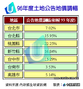 地價稅是以公告地價作為計算依據,而公告地價則是每三年調整一次,今年正好遇到調整的年度。依照內政部統計,全國公告地價平均都調升10%,尤其桃園縣漲幅高達22.25%為最大,因此今年起平均地價稅額也較三年前增加了一成。