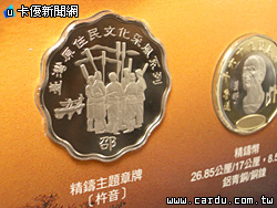 央行發行局長蔡炎樹表示,精鑄的銅質主題章牌很漂亮,正面是邵族以木杵敲擊石板的杵音文化,背面是彩色的祖靈籃圖案,雖然材質是銅,但鑄造方式是以製造銀幣、金幣的精鑄方式打造,相當精緻。