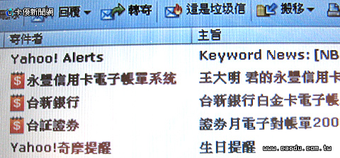而且「Yahoo!奇摩電子帳單專送服務」還擁有一個專屬標誌(見下圖),可以幫助用戶從茫茫信海中,一眼就找到電子帳單,大幅降低誤刪的可能,更增加用戶信賴度。