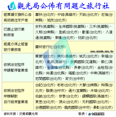 暑假旅遊旺季來臨,民眾大多會請旅行社安排行程,為了避免消費者選到有問題的旅行社,交通部觀光局公佈今年上半年的旅行業營運狀況,列出有問題的旅行業者供民眾參考。
