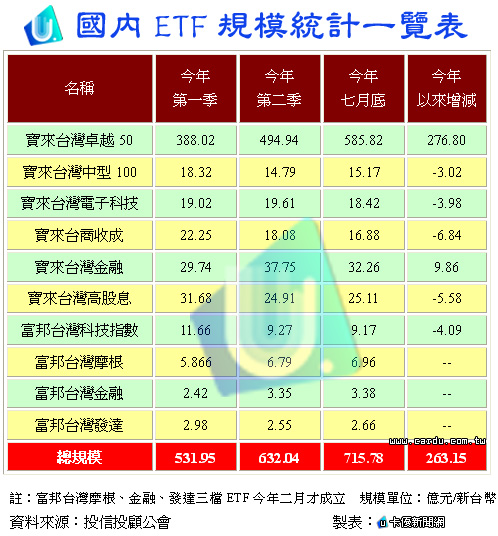 寶來投信總經理劉宗聖表示,台灣自2003年發展國內第一檔ETF迄今,資產規模逐年增加,到今年七月底止,ETF總資產規模突破新台幣700億元,但鎖定雙產業的ETF則是首次出現。