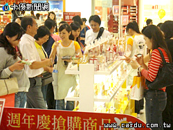 週年慶戰場熱鬧滾滾,除了百貨「陣頭」拼得兇,賣場也「殺聲」連連。搶在九月底首先推出週年慶的愛買,活動結束後趁著週年慶熱潮尚未消退,馬上緊接推出「HAPPY GO」卡友會,還祭出「憑1點多一件」換購優惠,讓卡友用一件商品的價格,把兩份的香米、洗面乳、雞精等民生用品帶回家。