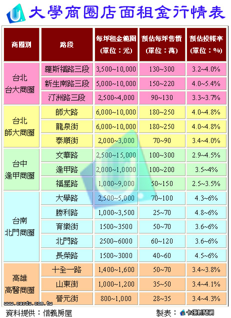 蘇啟榮認為,以知名大學為中心的「大學商圈」,原本就是多數店面投資者的首選之一,尤其當現階段店面市場憂心空置率提高,而減損報酬率時,這類難得出現空置的一線大學城商圈,將以持續且穩定的租金收益,成為不景氣之下,風險較低的投資選擇。
