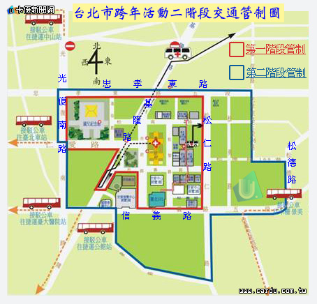 當晚10點至凌晨3點,交通局也將擴大進行第二階段交管,管制區域包括光復南路、忠孝東路、忠孝東路5段236巷、松德路、信義路、基隆路、松仁路及莊敬路等路段,管制區內的車輛一律禁止進出。