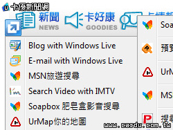 微軟公司IE8最新功能包括:將網頁中感興趣的文字反白,然後按一下所選內容上出現的藍色「加速器」圖示,即可在既有的網頁中就能快速瀏覽所需資訊,無須切換頁面。