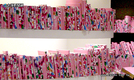對於作品「21.2.1972(覆折計畫)」,林明弘表示,「鳳凰牡丹」書衣除了賦予書籍更強烈的視覺呈現,藉著把書名都包覆後,讀者看不到書名,可重新尋找與書本間的新關係。