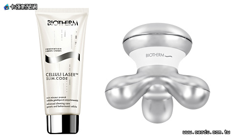 搭配「Slim Code基因燃脂5段式DIY按摩術」,讓身體全天候保持在彷彿「運動中」的能量消耗狀態,自然而然加速脂肪代謝。圖右:Slimshaker曲線光超摩力電動纖體儀